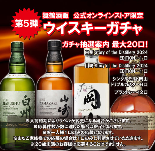 公式オンラインショップ限定‼ ウイスキー ガチャ 第5弾 サントリー 山崎 Story of the Distillery 2024 700mlx1本・サントリー 白州 Story of the Distillery 2024 700mlx1本・シングルモルト岡山 トリプルカスク 700mlx6本・ブラントン シングルバレル 750mlx12本 <20口限定>【条件付き送料無料】※注意事項必須 必ずお読みください※