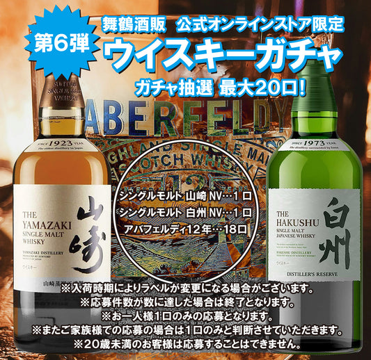 公式オンラインショップ限定‼ ウイスキー ガチャ 第6弾 サントリー 山崎 700mlx1本・サントリー 白州 700mlx1本・アバフェルディ12年 700mlx18本 <20個口限定>【条件付き送料無料】※注意事項必須 必ずお読みください※